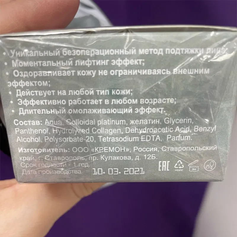 - Суспензия наночастиц платины. Суспензия наночастиц платины благодаря своему размеру способны проникать в кожу на всю ее глубину и тем самым ускоряется естественная выработка коллагена организмом, замедляющая процесс старения. Platinum Mask позволяет уменьшить глубину и визуальный вид морщинок на лбу, шее, “гусиных лапок” вокруг глаз и носогубных морщин.